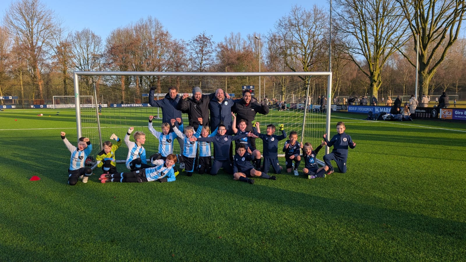 De jongens vieren hun doelpunt uitgebreid en erg mooi om zo veel enthousiasme te zien!!